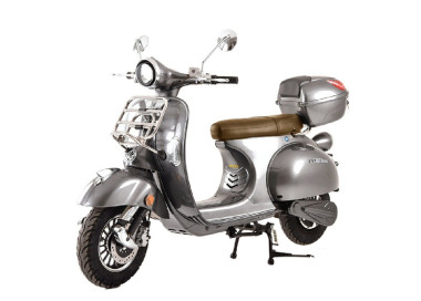Scooter eléctrico de 3000W plateado, rojo o azul turquesa Bella. Es matriculable y estilo retro, inspirado en la clásica Vespa. Perfecta para recorrer la ciudad! No produce CO2 ni contaminación...
