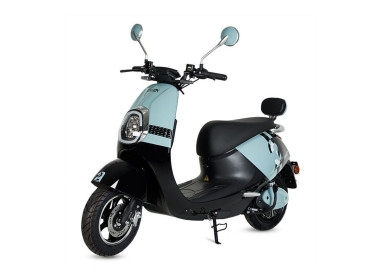 Scooter eléctrico de color amarillo, azul o rojo Moma. Disfrutarás de su velocidad con su potente motor de 800W. Es ideal para paseos urbanos, es matriculable y de estilo vintage y colorido.