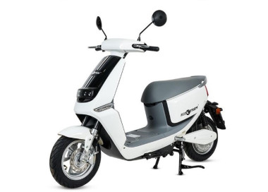 Nuevo scooter eléctrico Tivoli de 1500W, con un estilo totalmente moderno, en color blanco y negro. Con Tivoli disfrutarás de tus paseos por la ciudad, de forma segura y ecológica.